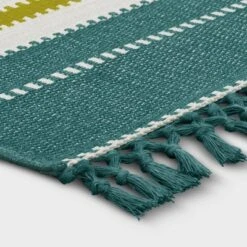 5'x7' Narrow Wornstripe Rectangular Woven Outdoor Area Rug Turquoise Blue – Threshold™